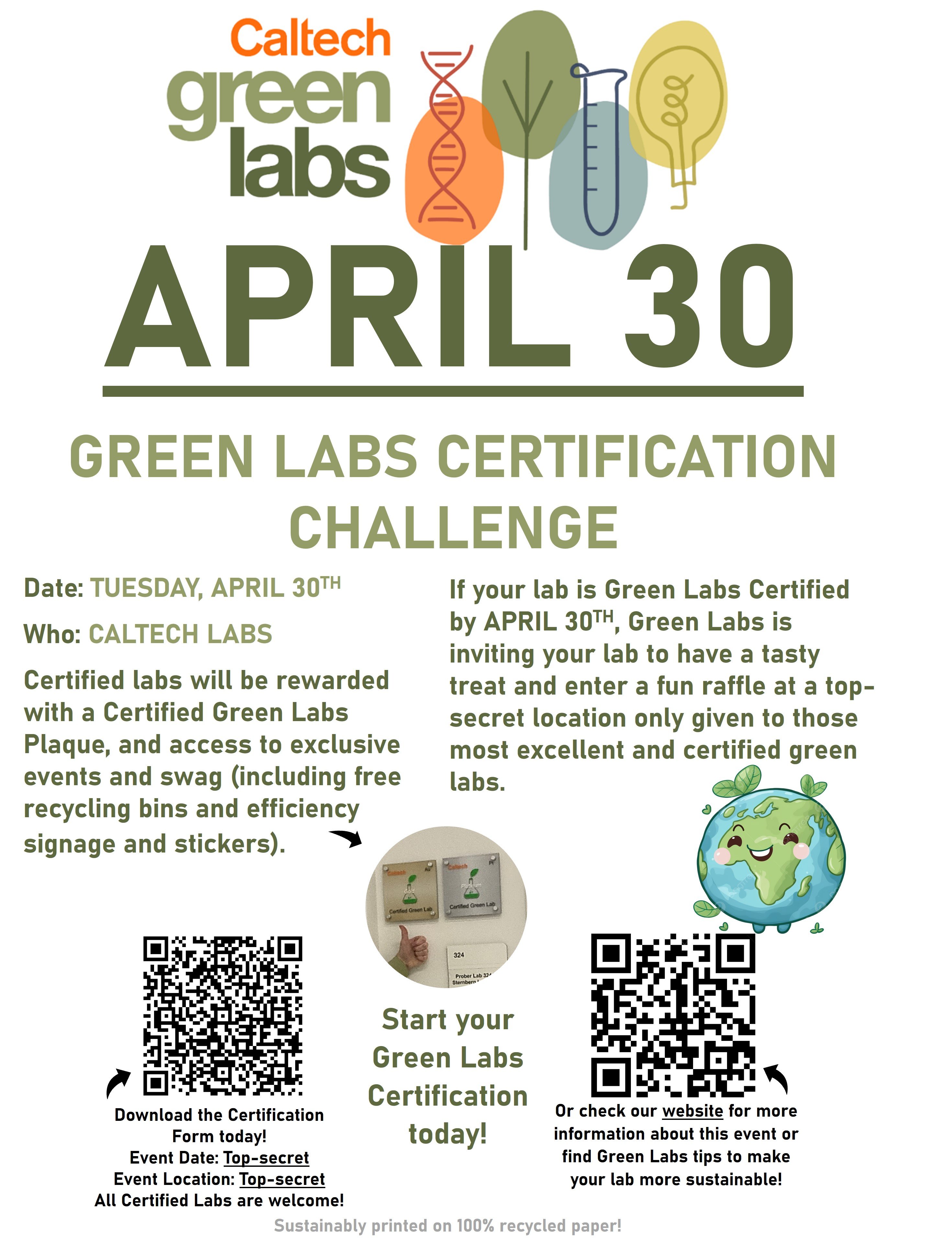 Green Labs is challenging labs to finish their Green Labs Certification! If your lab is Certified by April 30, your lab will be invited to come have a sweet treat on us to celebrate your sustainability excellence!