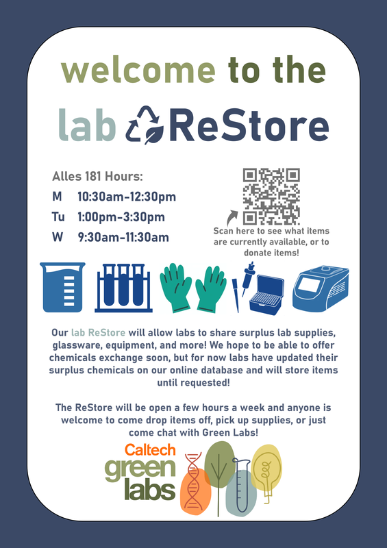 Green Labs is opening a Lab ReStore! We found a space in Alles 181 where we can exchange our surplus lab supplies! Stop by to chat, pick up goods, or drop off lab supplies (after filling out the online Marketplace Form, of course!).